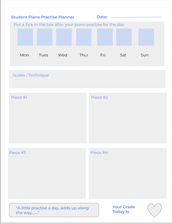 Student Piano Weekly Planner (Blue)
